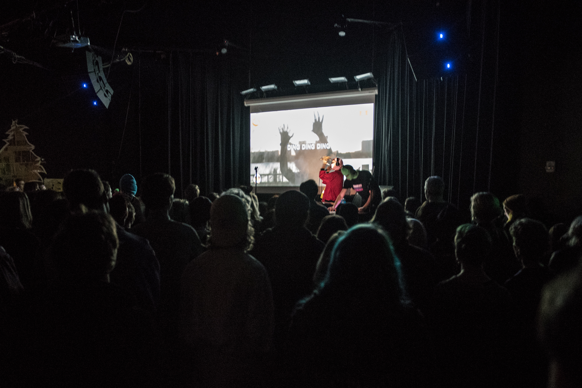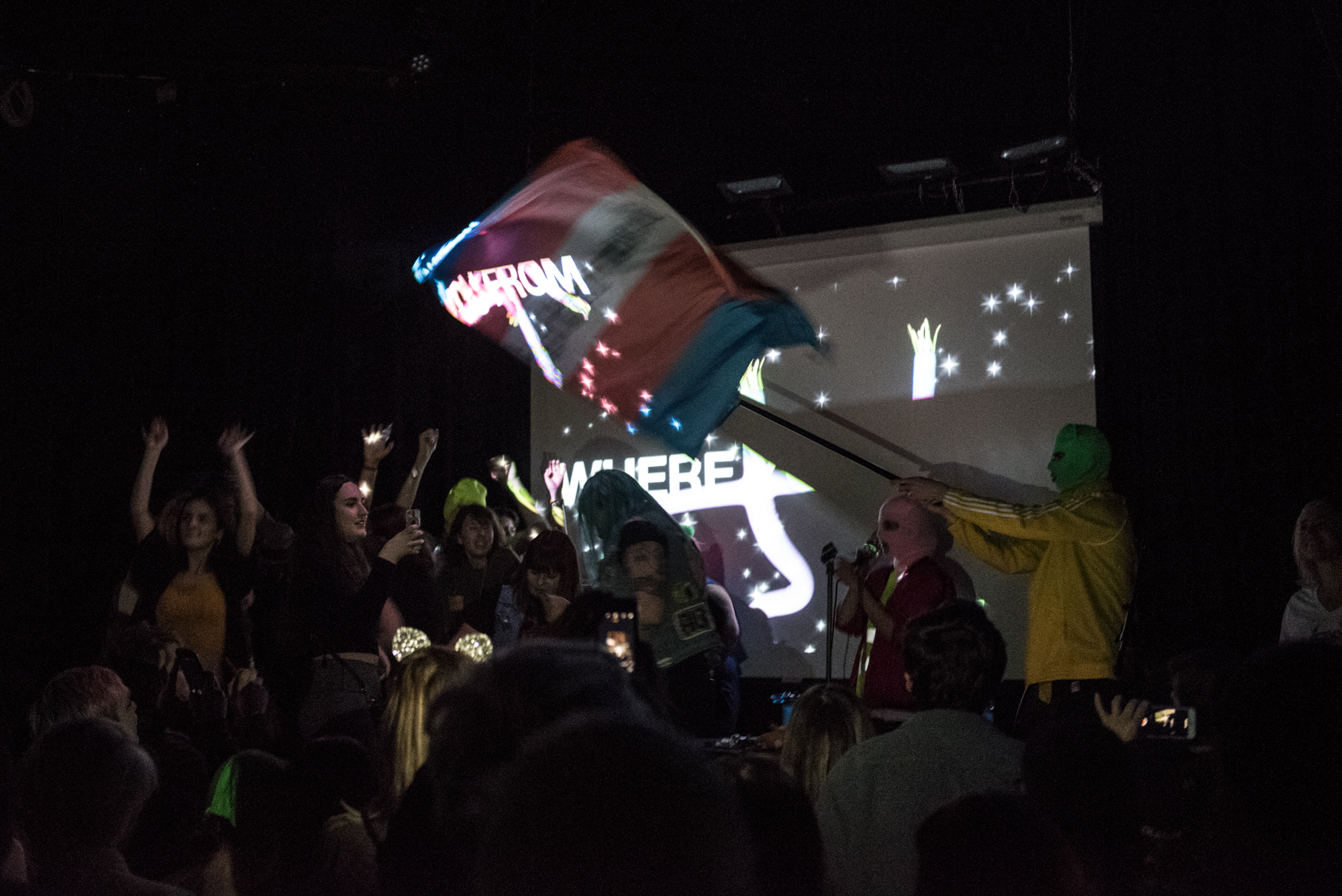 Vera was transformed into a multimedia musical experience for the night, with a DJ to warm up the crowd, a projection screen of powerful words and images, and bright orange traffic cones as props. Imaginary photog extraordinaire Morgen captured the action! Take a look at some of our favorite snaps: